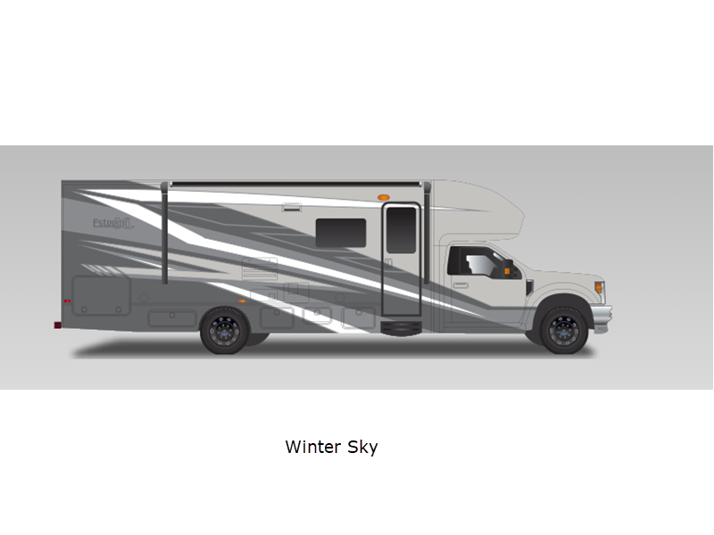Sleeps 6 Slides 1 Length 34 ft 11 in Ext Width 8 ft 4 in Ext Height 12 ft 6 in Int Height 7 ft Interior Color Stillwater Exterior Color Partial Paint, Harvest Night, Night Shade, Summer Equinox, Winter Sky. Hitch Weight 12000 lbs GVWR 22000 lbs Fresh Water Capacity 53 gals Grey Water Capacity 31 gals Black Water Capacity 32 gals Tire Size 245/70R19.5 Furnace BTU 30000 btu Generator 6,000W generator with auto-gen start Fuel Type Diesel Engine 6.7L Power Stoke V8 Turbo Diesel Chassis Ford F600 4x4 Horsepower 330 hp Fuel Capacity 67 gals Wheelbase 248 in Number Of Bunks 2 Available Beds Queen Torque 950 ft-lb Refrigerator Type 12V Refrigerator Size 10 cu ft Cooktop Burners 3 Shower Size 32" Number of Awnings 1 Axle Weight Front 7500 lbs Axle Weight Rear 15500 lbs LP Tank Capacity 56 lbs. Water Heater Capacity 10 gal Water Heater Type Gas/Electric AC BTU 15000 btu TV Info LR LED HD Smart TV. Awning Info 18' Electric with LED Lights Gross Combined Weight 34000 lbs Shower Type Radius Similar Floorplans