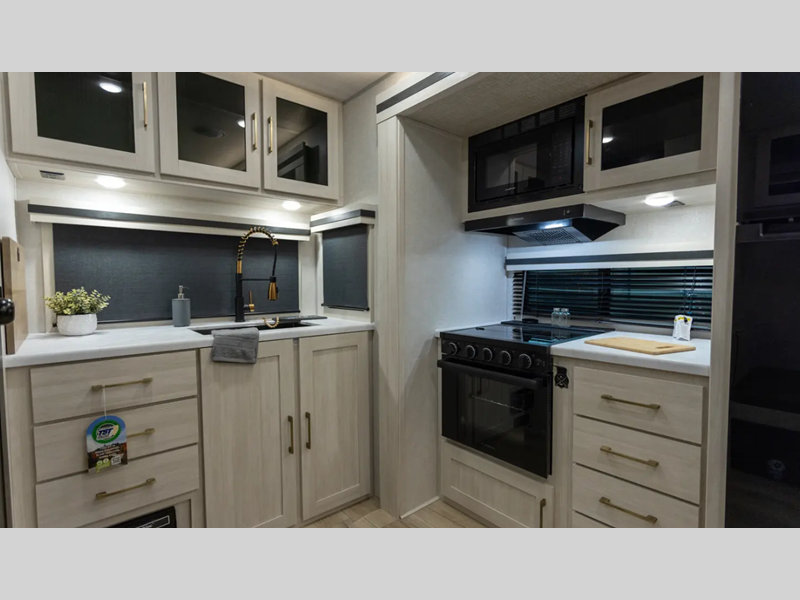 Sleeps 5 Slides 1 Length 30 ft 9 in Ext Width 8 ft Ext Height 11 ft 3 in Hitch Weight 715 lbs GVWR 7715 lbs Dry Weight 6158 lbs Cargo Capacity 1557 lbs Fresh Water Capacity 40 gals Grey Water Capacity 60 gals Black Water Capacity 30 gals Available Beds Queen Refrigerator Type 12V Black Glass Refrigerator Size 10 cu ft Cooktop Burners 3 Number of Awnings 1 Water Heater Type Tankless AC BTU 15000 btu TV Info LR HD TV Awning Info 21' Electric w/LED Light Strip Axle Count 2 Shower Type Standard Electrical Service 30 amp Solar Wattage 200 watts Similar Floorplans
