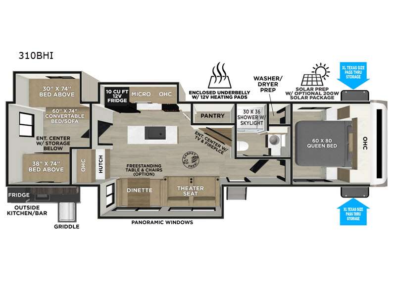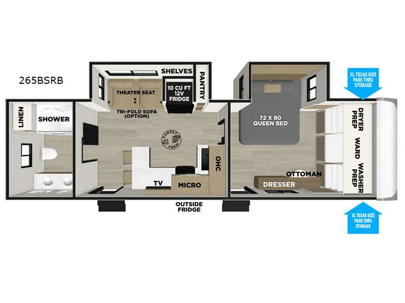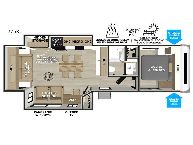 - Extra Large Pass Thru Storage w/ Slam Latch Baggage Doors