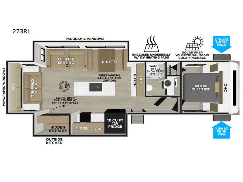- Free-Standing Dinette (Standard on 286RL, 325RL, 375FAM, & 378FL)