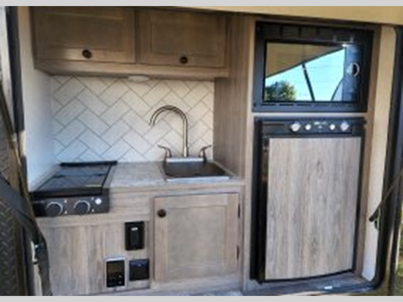 Sleeps 2 Length 13 ft 6 in Ext Width 8 ft 6 in Ext Height 8 ft 2 in Int Height 4 ft 11 in Interior Color Grotto, Gray, Red, Turquoise Exterior Color White, Gray, Red, Black, Blue, Yellow, Orange Hitch Weight 195 lbs Dry Weight 1795 lbs Cargo Capacity 1900 lbs Fresh Water Capacity 22 gals Cooktop Burners 2 LP Tank Capacity 20 lbs Water Heater Capacity 6 gal Water Heater Type DSI Gas Axle Count 1 Number of LP Tanks 1
