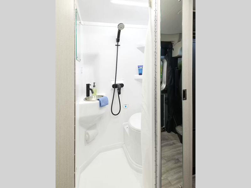 Sleeps 2 Length 21 ft 1 in Ext Width 6 ft 9 in Ext Height 9 ft 5 in Int Height 6 ft 3 in Interior Color Alpine White Exterior Color Ceramic Gray, Full Body Paint; Silver, White Hitch Weight 5000 lbs GVWR 9350 lbs Fresh Water Capacity 27 gals Grey Water Capacity 13 gals Black Water Capacity 13.5 gals Furnace BTU 14300 btu Generator 2800 Gas Generator Fuel Type Gas Engine 3.6L Pentastar V6 Chassis RAM Promaster Horsepower 276 hp Fuel Capacity 24 gals Wheelbase 159 in Torque 250 ft-lb Refrigerator Type Single Door 12V Convection Cooking Yes Cooktop Burners 1 LP Tank Capacity 24 lbs Water Heater Capacity 2.64 gal Water Heater Type Truma Combi Eco LP AC BTU 11000 btu Gross Combined Weight 11500 lbs Shower Type Wet/Bath Shower Electrical Service 30 amp Similar Floorplans