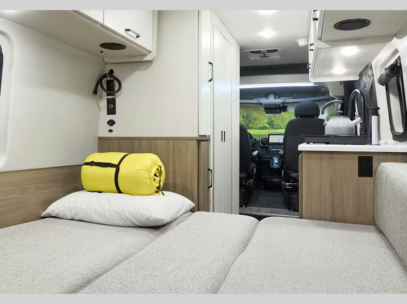 Sleeps 2 Length 21 ft 1 in Ext Width 6 ft 9 in Ext Height 9 ft 5 in Int Height 6 ft 3 in Interior Color Alpine White Exterior Color Ceramic Gray, Full Body Paint; Silver, White Hitch Weight 5000 lbs GVWR 9350 lbs Fresh Water Capacity 27 gals Grey Water Capacity 13 gals Black Water Capacity 13.5 gals Furnace BTU 14300 btu Generator 2800 Gas Generator Fuel Type Gas Engine 3.6L Pentastar V6 Chassis RAM Promaster 3500 XT Horsepower 276 hp Fuel Capacity 24 gals Wheelbase 159 in Available Beds Twin Bed with King Conversion Torque 250 ft-lb Refrigerator Type Single Door 12V Cooktop Burners 1 LP Tank Capacity 24.78 lbs. Water Heater Capacity 2.64 gal Water Heater Type Truma Combi Eco LP AC BTU 11000 btu Gross Combined Weight 11500 lbs Shower Type Wet/Bath Shower Electrical Service 30 amp Solar Wattage 200 watts Similar Floorplans